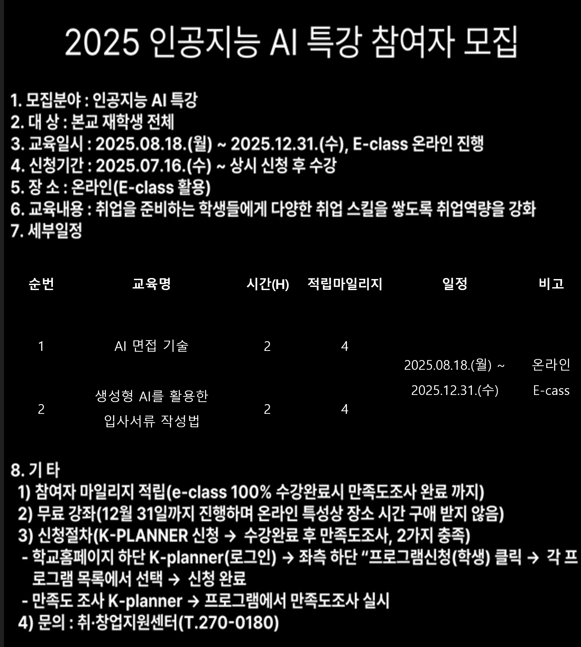 2025 인공지능 AI 특강 참여자 모집(온라인 특강)