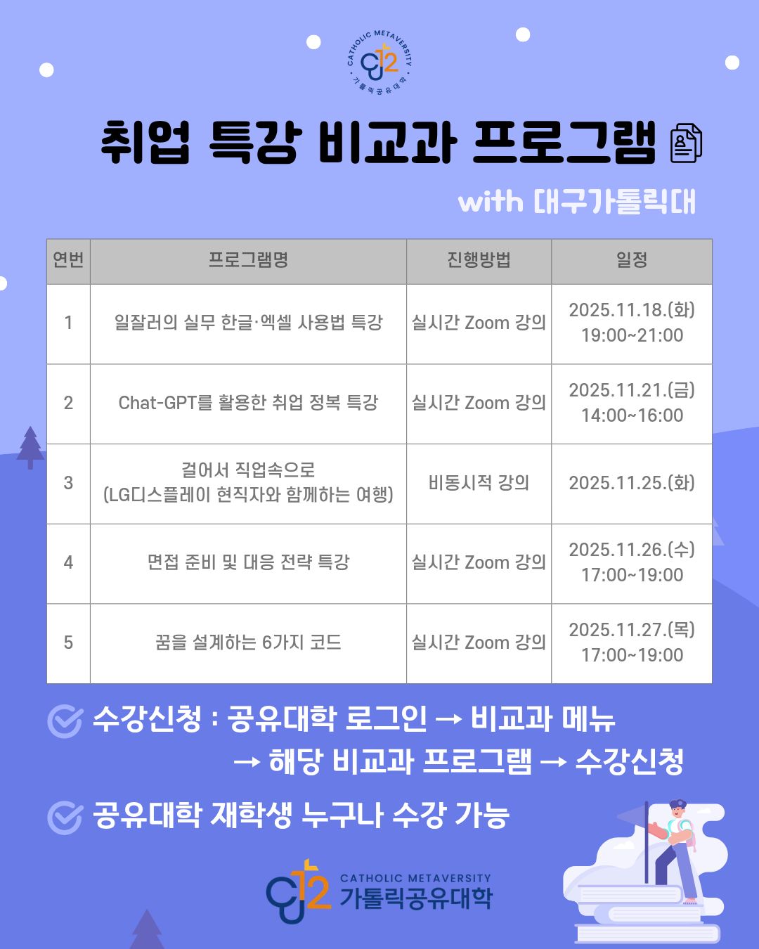 [가톨릭공유대학(CU12)] 취업 특강 비교과 프로그램 안내(일정 변경)