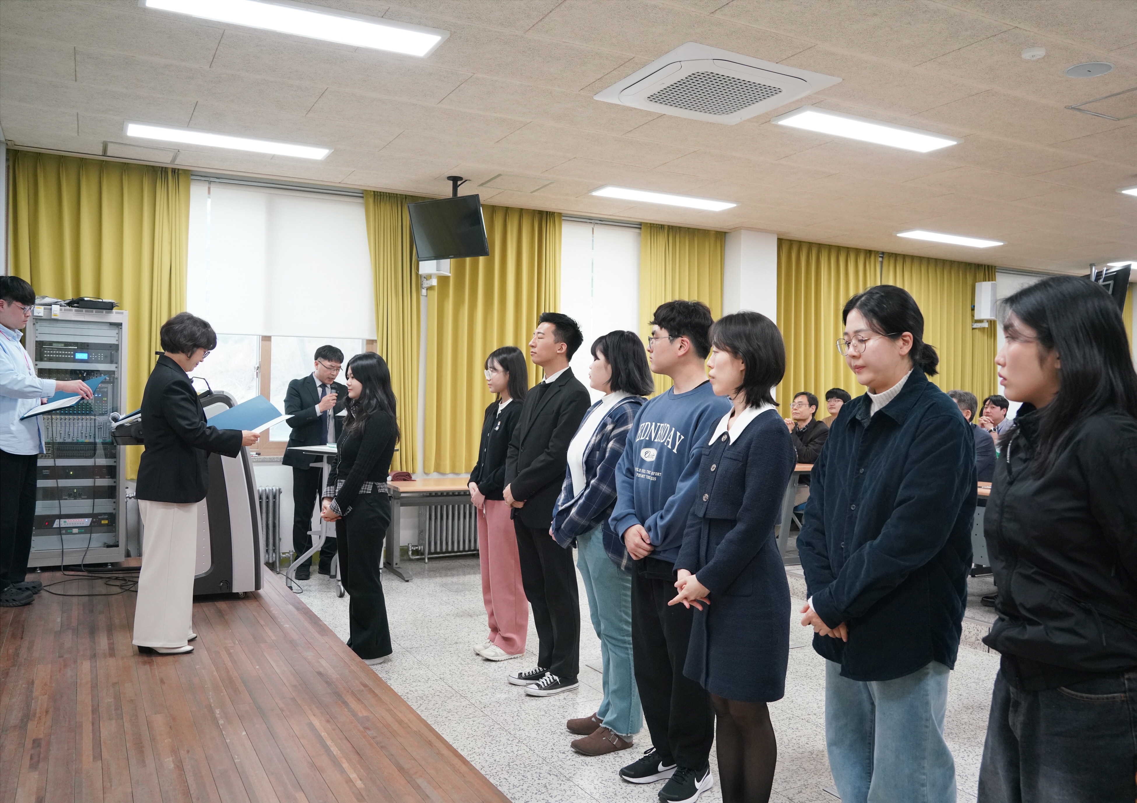 행사는 임명장 수여, 선서식, 활동 안내 및 팀별 네트워킹 시간 등으로 진행됐으며, 이를 통해 아미쿠스복지관 학생 직원들은 사명감을 다지고, 함께 활동할 지역사회 연계기관과의 친밀감을 형성하는 뜻깊은 시간을 가졌다.