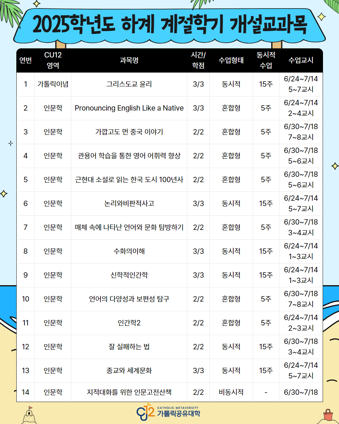[가톨릭공유대학] 2025학년도 하계 계절학기 개설교과목 안내