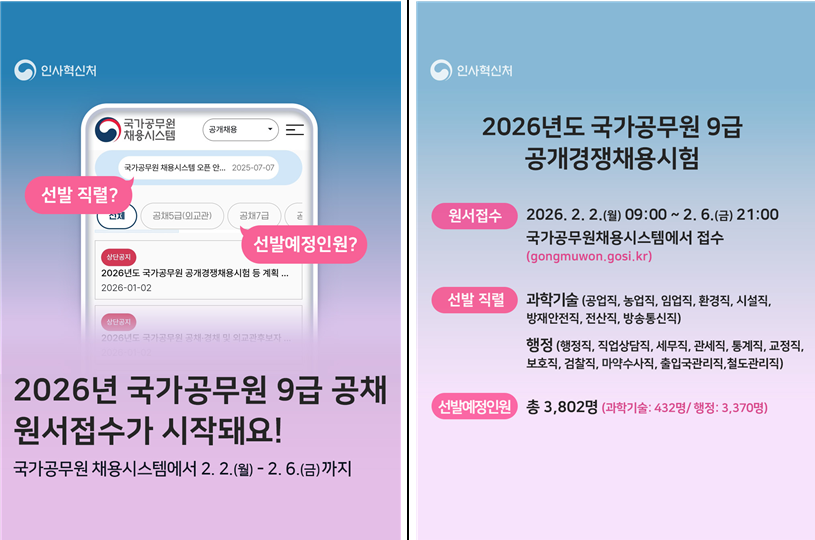 2026년도 국가공무원 공개경쟁 채용 시험 등 계획 안내