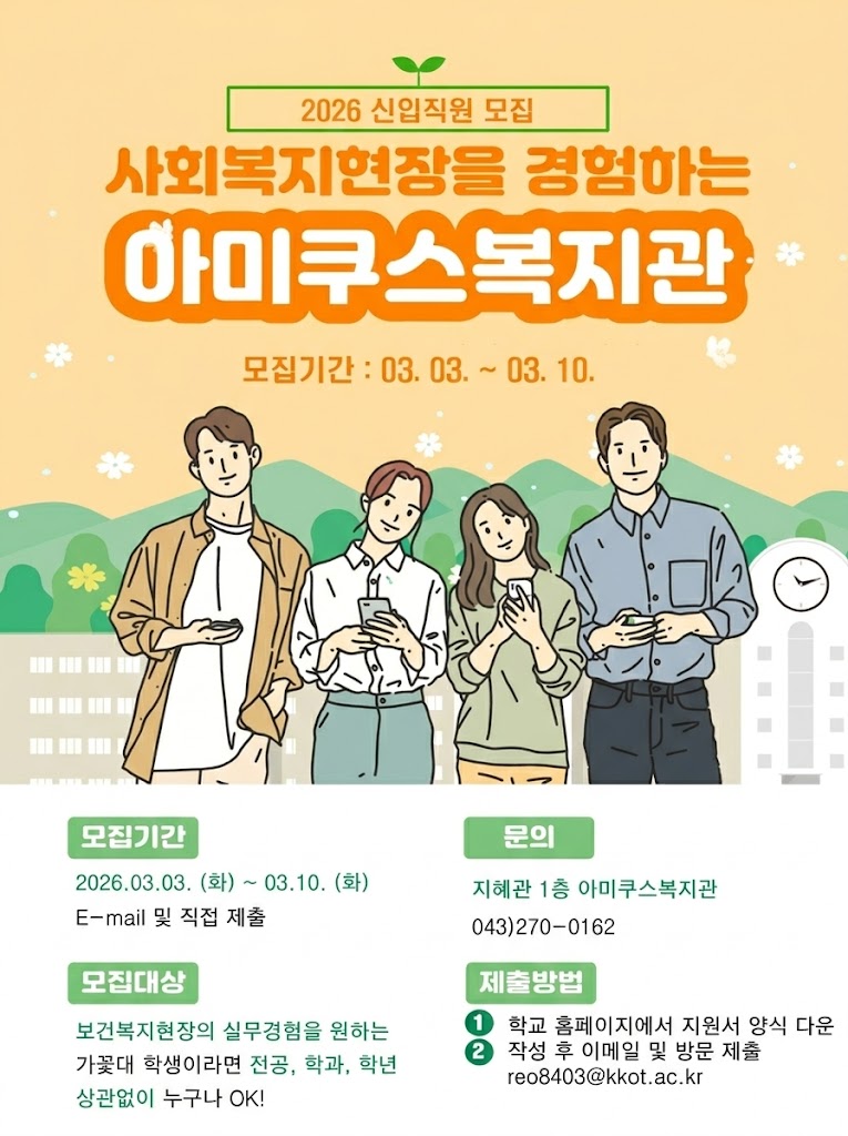2026학년도 아미쿠스복지관 신규 직원을 다음과 같이 모집합니다.