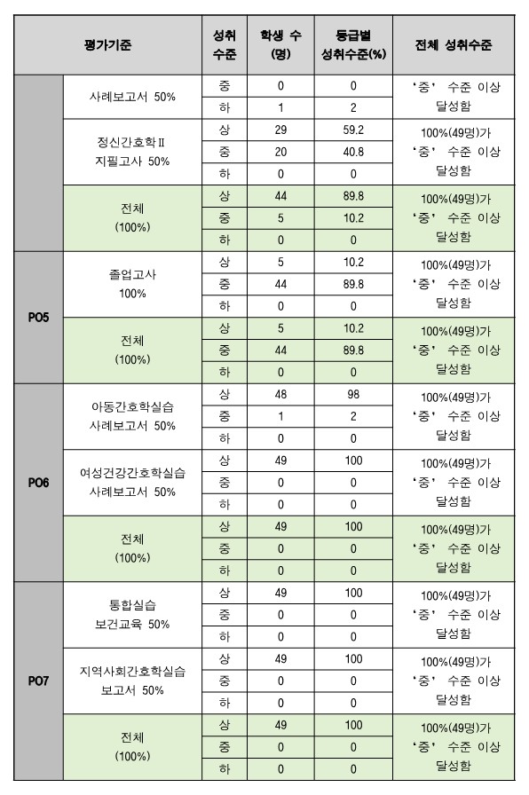 [2024년 2월 졸업생의 프로그램 학습성과 달성도 결과 및 2024년 평가 체계]