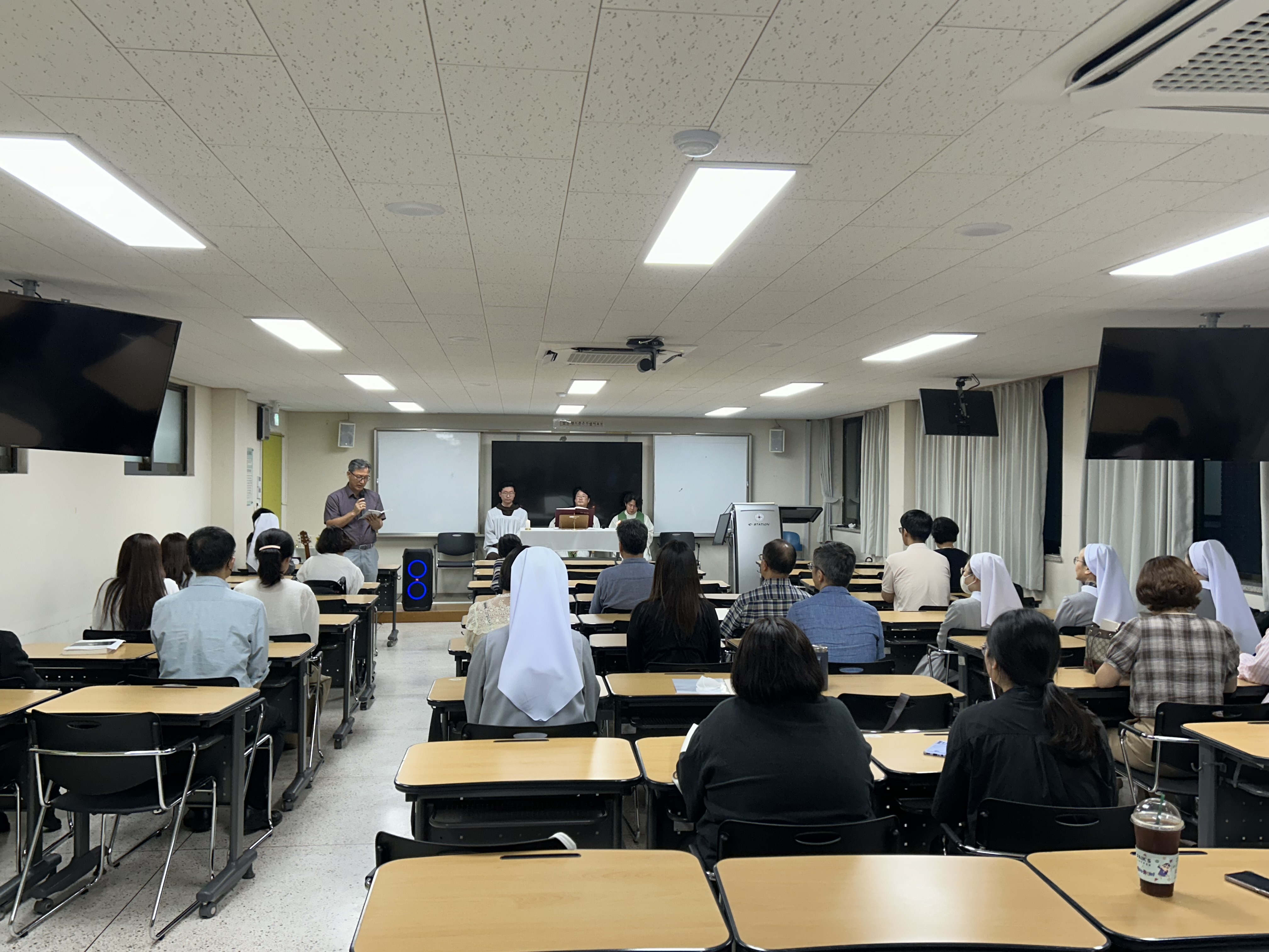 미사에 참석하신 각 전공주임 교수님과 재학생분이 한 자리에 모여 2학기 강의 시작 전 응원과 격려를 전하는 시간을 가졌습니다.